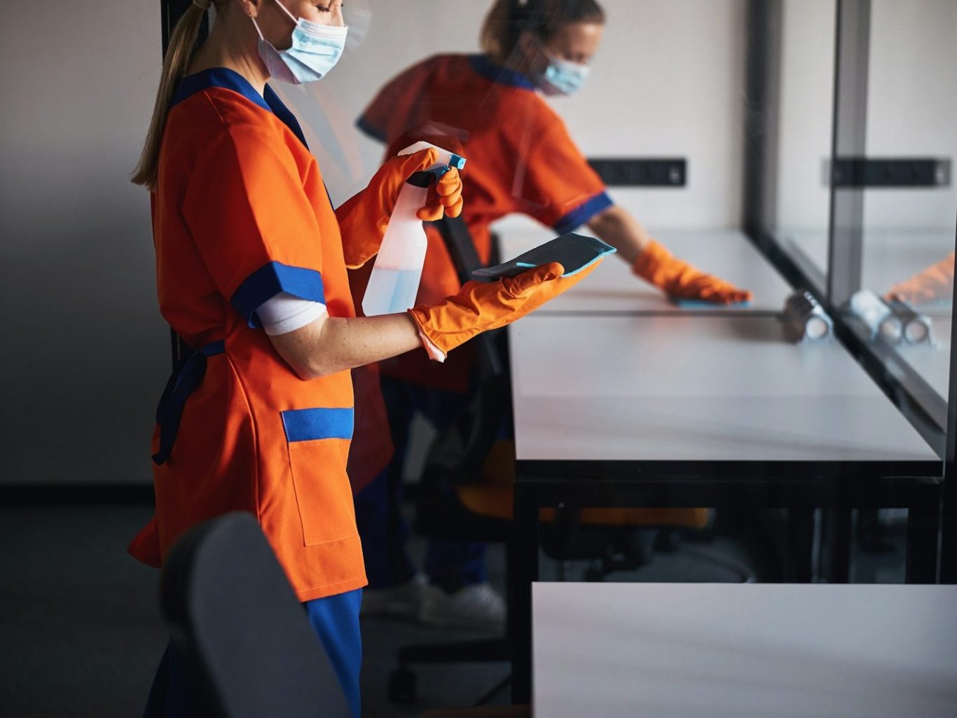 Hygienische Reinigung aller Oberflächen, Armaturen und Böden.
